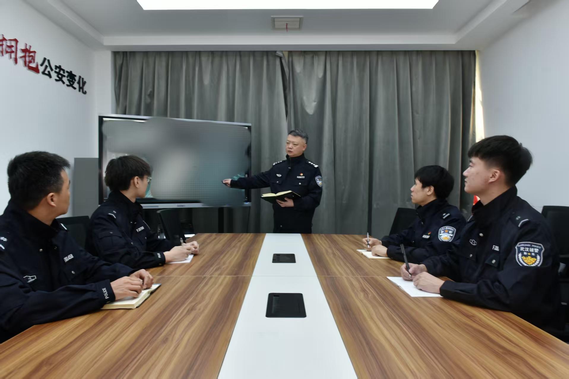 圖為成浩(中)帶領(lǐng)年輕民警開(kāi)展案件復(fù)盤(pán)。