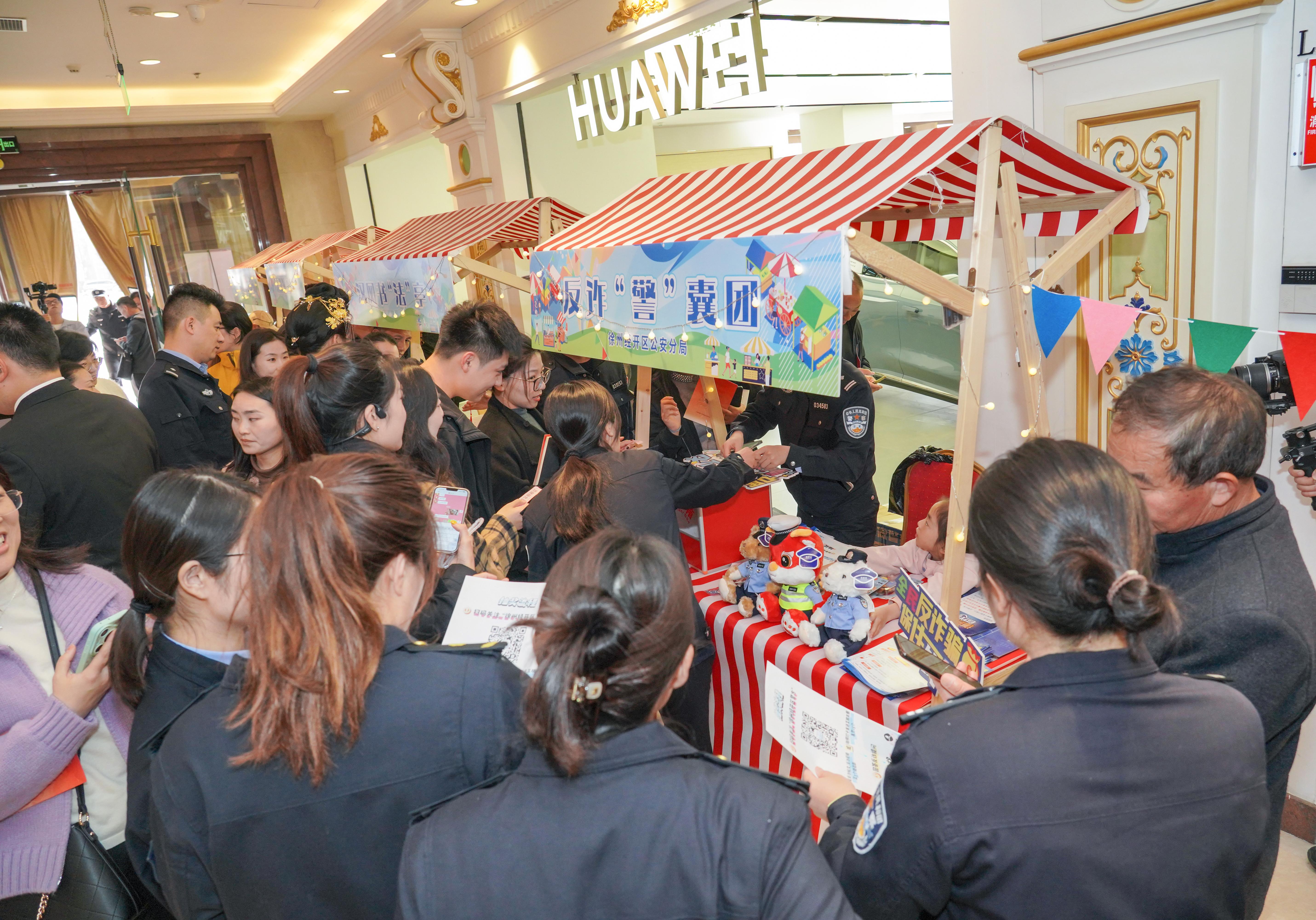 活動(dòng)現(xiàn)場(chǎng),商場(chǎng)內(nèi)外大屏滾動(dòng)播放的徐州市“八五”普法宣傳片,吸引了眾多顧客駐足觀看。法治文化作品展區(qū)展示著優(yōu)秀的法治主題書畫作品,普法市集上,公安、檢察、法院、律師等普法宣傳和咨詢攤位前圍滿了咨詢的市民?,F(xiàn)場(chǎng)還設(shè)置了六大非遺攤位,面塑捏出的卡通公檢法小熊、糖畫制成的天平、扎染作品上的法治圖案吸引著眾多目光,書法攤位面前排著長(zhǎng)隊(duì),書法家正在現(xiàn)場(chǎng)書寫送給市民的伴手禮。