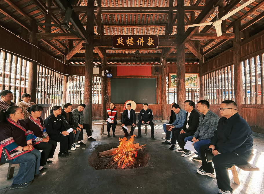11月14日,廣西壯族自治區(qū)柳州市三江侗族自治縣古宜鎮(zhèn)南站社區(qū)祥和鼓樓內(nèi),政法干警與社區(qū)干部、居民齊聚一堂,開展“鼓樓議事”,面對面調(diào)解糾紛、分析治安形勢,共同為法治社區(qū)建設建言獻策,凝聚平安合力。