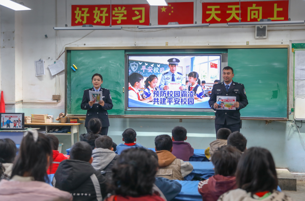 11月20日,新疆維吾爾自治區(qū)葉城縣巴仁鄉(xiāng)派出所民警深入巴仁鄉(xiāng)小學(xué)開(kāi)展法治宣傳活動(dòng)。民警以案例講解的方式為學(xué)生講解預(yù)防校園欺凌相關(guān)知識(shí),引導(dǎo)學(xué)生在日常生活中增強(qiáng)法治意識(shí),提升自我保護(hù)能力。