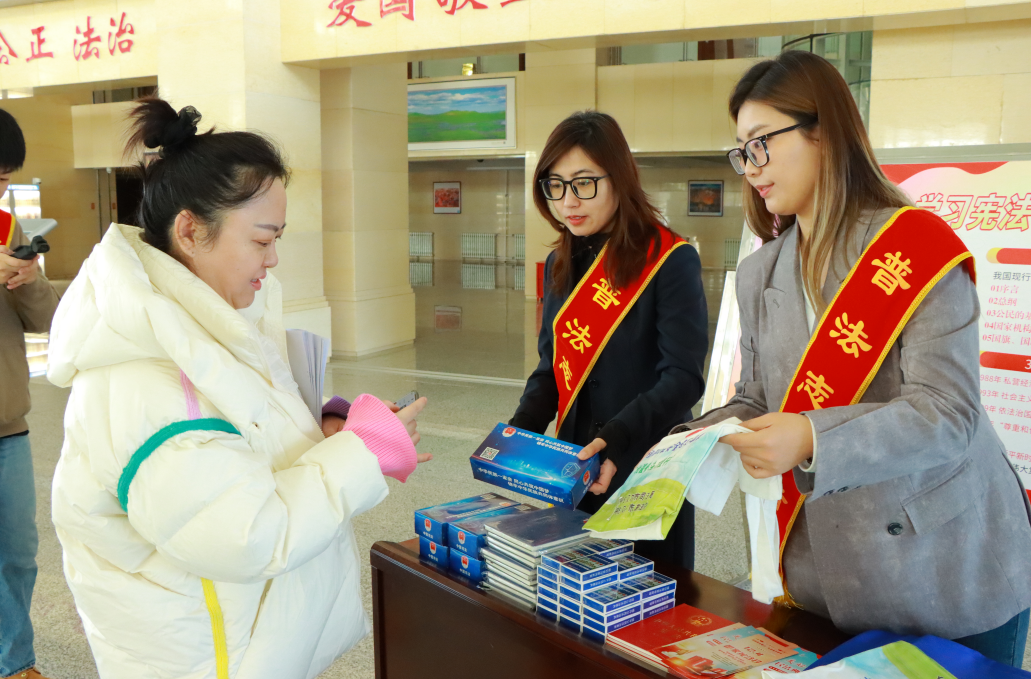 在第十二個“國家憲法日”來臨之際,內(nèi)蒙古自治區(qū)呼倫貝爾市司法局普法志愿者帶著滿滿的“法治干貨”,共赴一場“憲法之約”。普法志愿者在河西新區(qū)政務綜合樓機關二樓南門搭建普法宣傳展臺?,F(xiàn)場擺放著憲法主題宣傳展板,普法志愿者以通俗易懂的語言,結(jié)合展板內(nèi)容向往來的機關干部職工講解憲法的發(fā)展歷程、憲法的作用、憲法保障公民的基本權利等內(nèi)容,帶來“零距離”的普法服務,有效增強了國家工作人員的法治觀念和法律意識。
