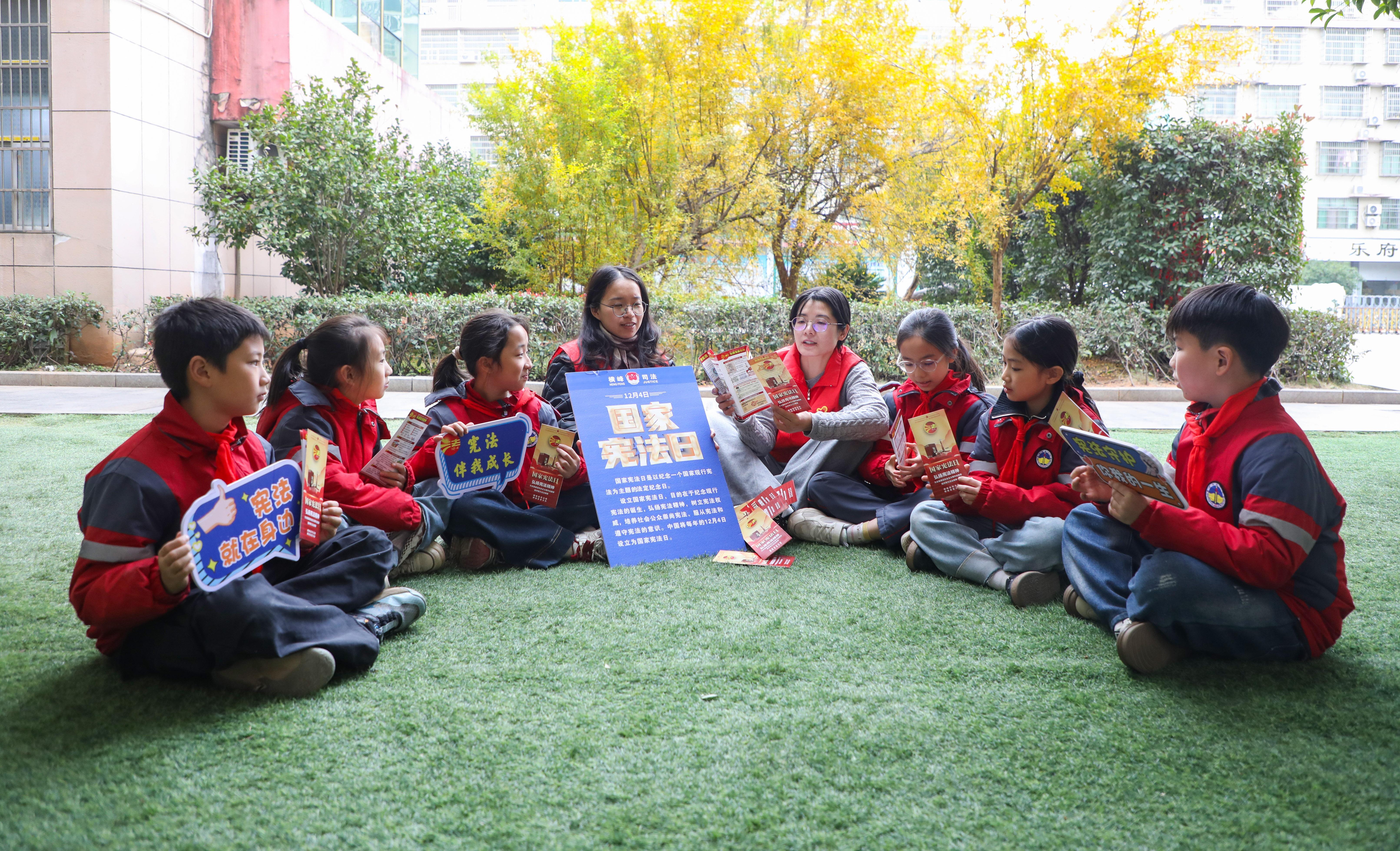 圖為12月5日,普法志愿者走進橫峰縣第二小學(xué)為同學(xué)們宣講憲法知識。