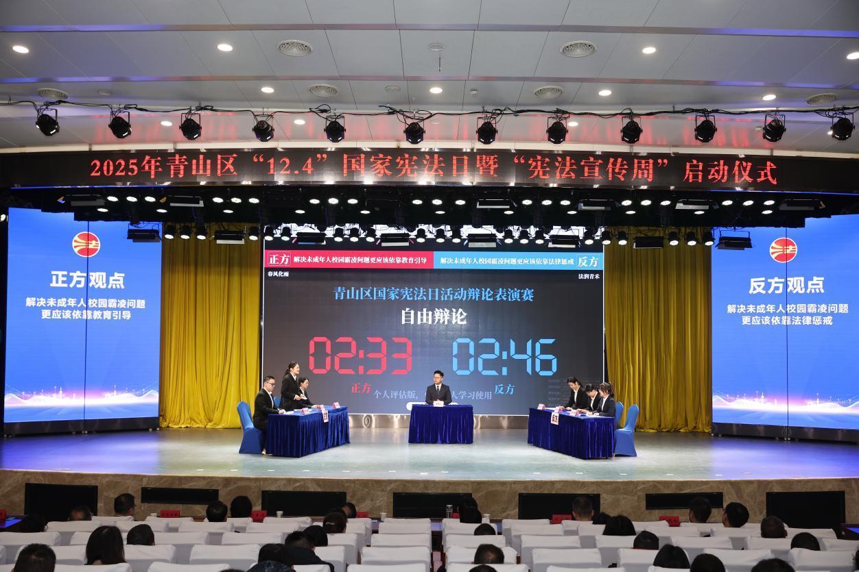 圍繞“解決未成年人校園霸凌問題,更應(yīng)該依靠教育引導(dǎo)還是法律懲戒”這一辯題,由青山區(qū)律師行業(yè)優(yōu)秀代表與武漢科技大學(xué)法學(xué)專業(yè)學(xué)生代表組成的正反兩方展開激烈辯論。