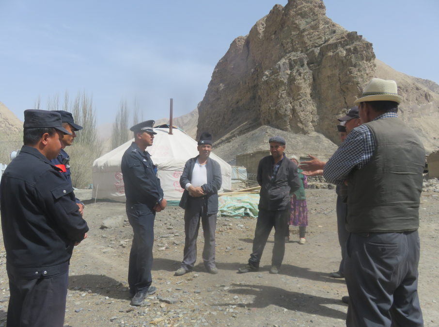 恰爾隆派出所位于阿克陶縣南部昆侖山區(qū),帕米爾高原邊緣,地貌特征復(fù)雜多樣。轄區(qū)地理環(huán)境特殊,人口稀少交通不便,與當(dāng)?shù)啬撩瘛⒕用裢?lián)困難。四年間,西克爾巴依·阿依提巴依用腳步丈量著轄區(qū)內(nèi)5個(gè)村、860公里山路,用責(zé)任與溫情守護(hù)著散居在大山深處的105位留守老人。