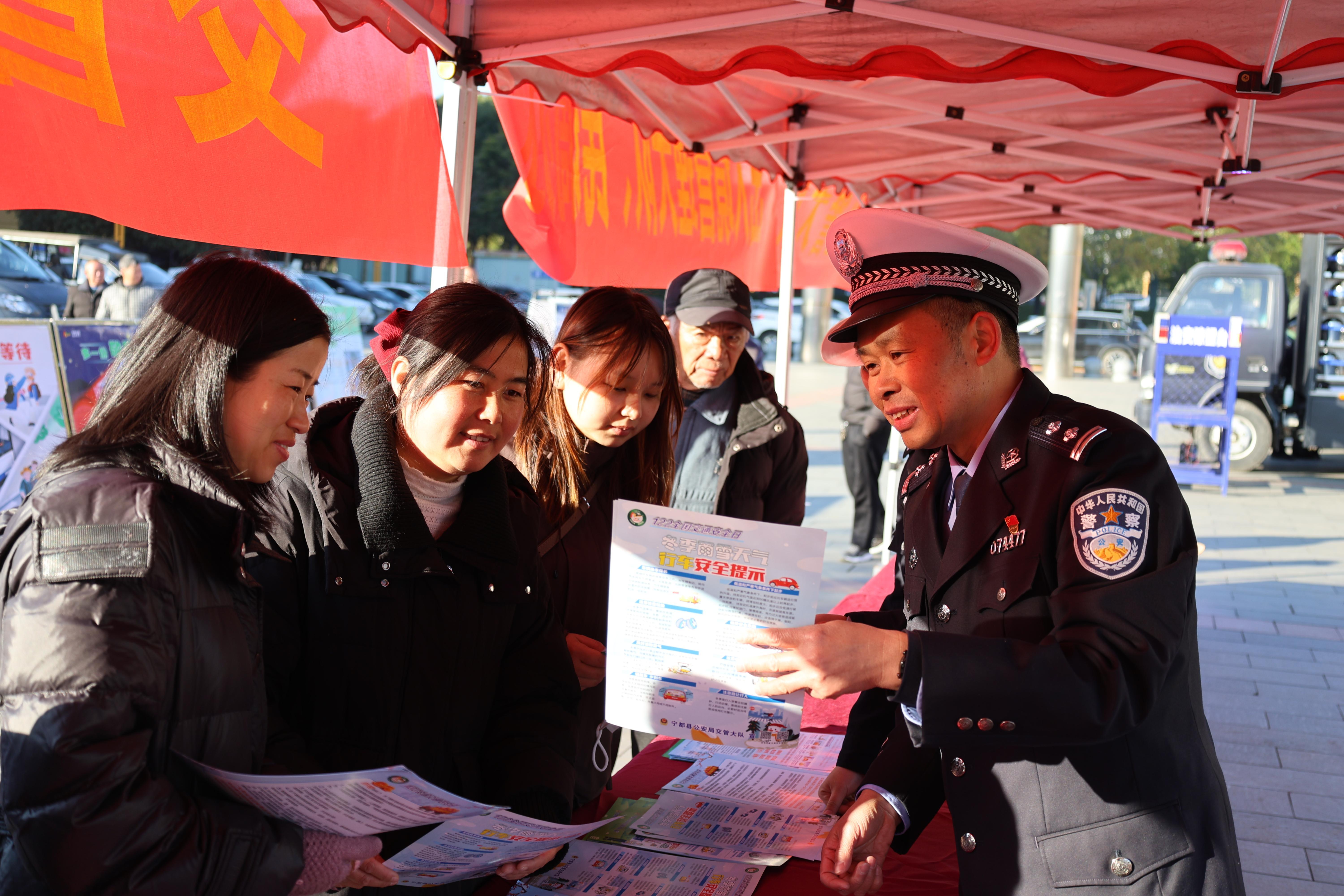 圖為1月9日上午,民警在活動現(xiàn)場向群眾宣傳交通安全知識。