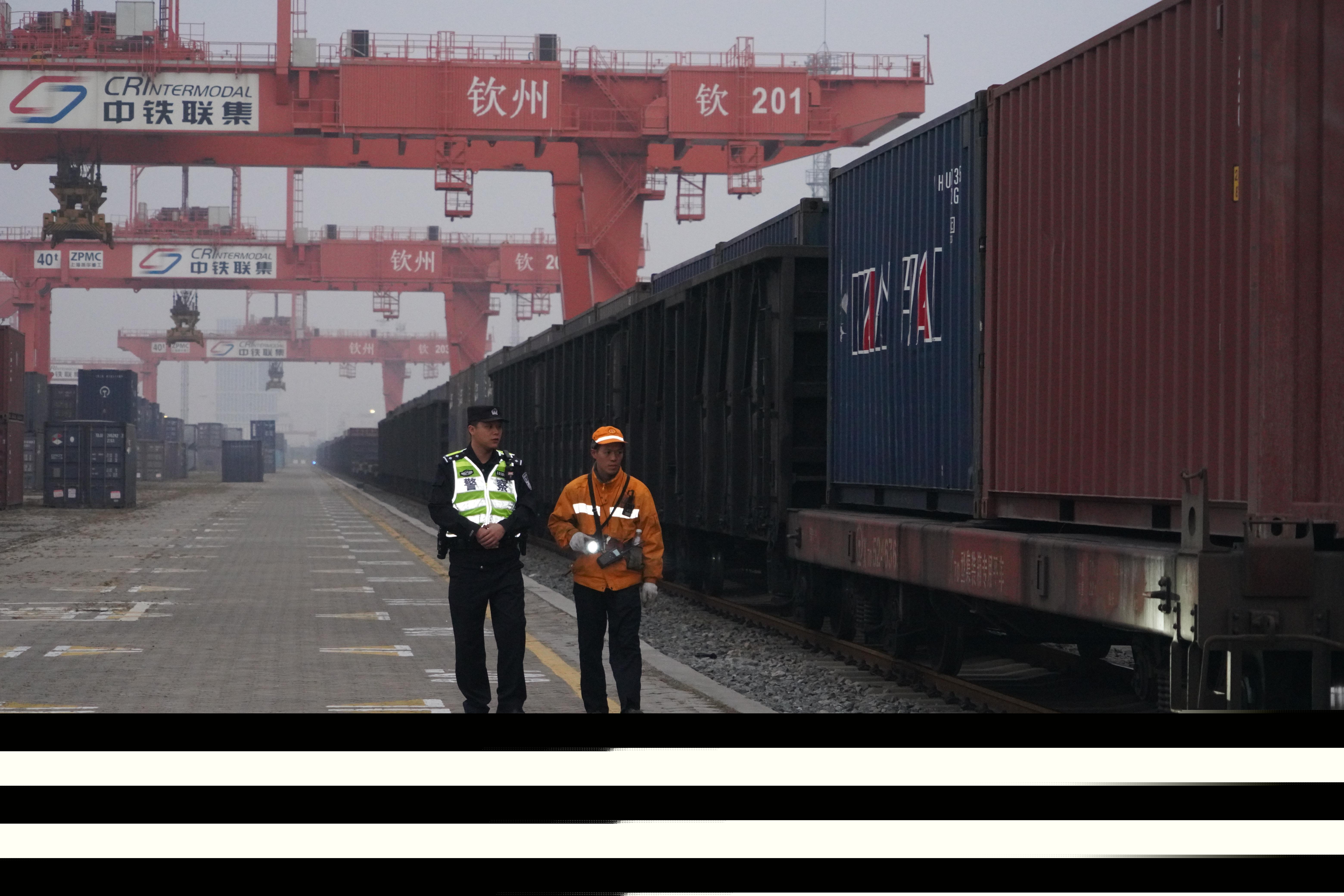 圖為李浩偉和鐵路職工檢查貨場(chǎng)。陳大鵬 攝