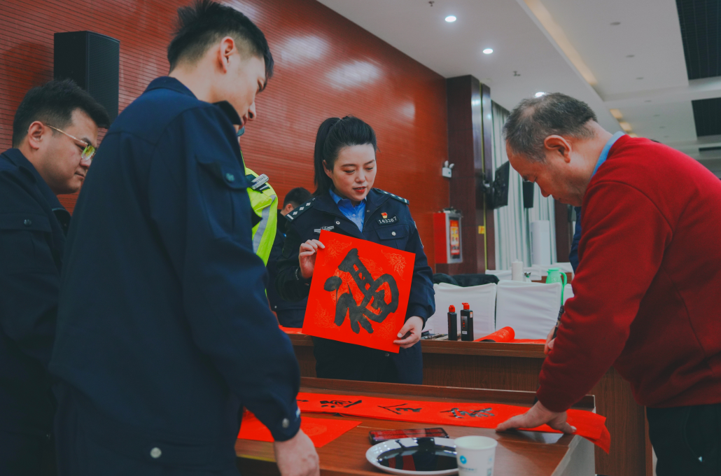 2月11日,新疆沙雅縣文化館組織民間藝術家及書法愛好者走進縣公安局,開展“書香送福進警營·翰墨濃情頌平安”主題文化活動。藝術家們以筆墨為載體,將真摯的祝福與崇高的敬意凝于一副副春聯之中,為常年奮戰(zhàn)在維護穩(wěn)定、服務群眾第一線的公安民輔警送去別樣的文化“年貨”和新春問候。