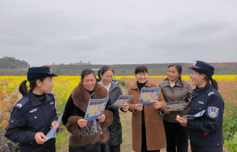近日,江西省遂川縣萬(wàn)畝油菜花進(jìn)入盛花期,吸引不少游客前來(lái)踏青賞花。遂川縣公安局“遂心”女警宣傳隊(duì)走進(jìn)賞花現(xiàn)場(chǎng),通過(guò)以案說(shuō)法、交流互動(dòng)等方式,向游客宣傳反詐、禁毒、交通安全等知識(shí),筑牢基層安全防線。