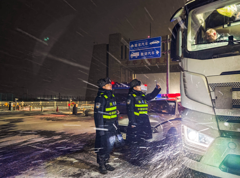 3月10日深夜,十二級大風突襲新疆阿拉山口口岸,口岸鐵路綜合查驗場燈火通明。狂風掠過鐵軌,卷起細碎的沙石,砸在正在現場執(zhí)勤的新疆出入境邊防檢查總站阿拉山口出入境邊防檢查站民警們的身上,噼啪作響。