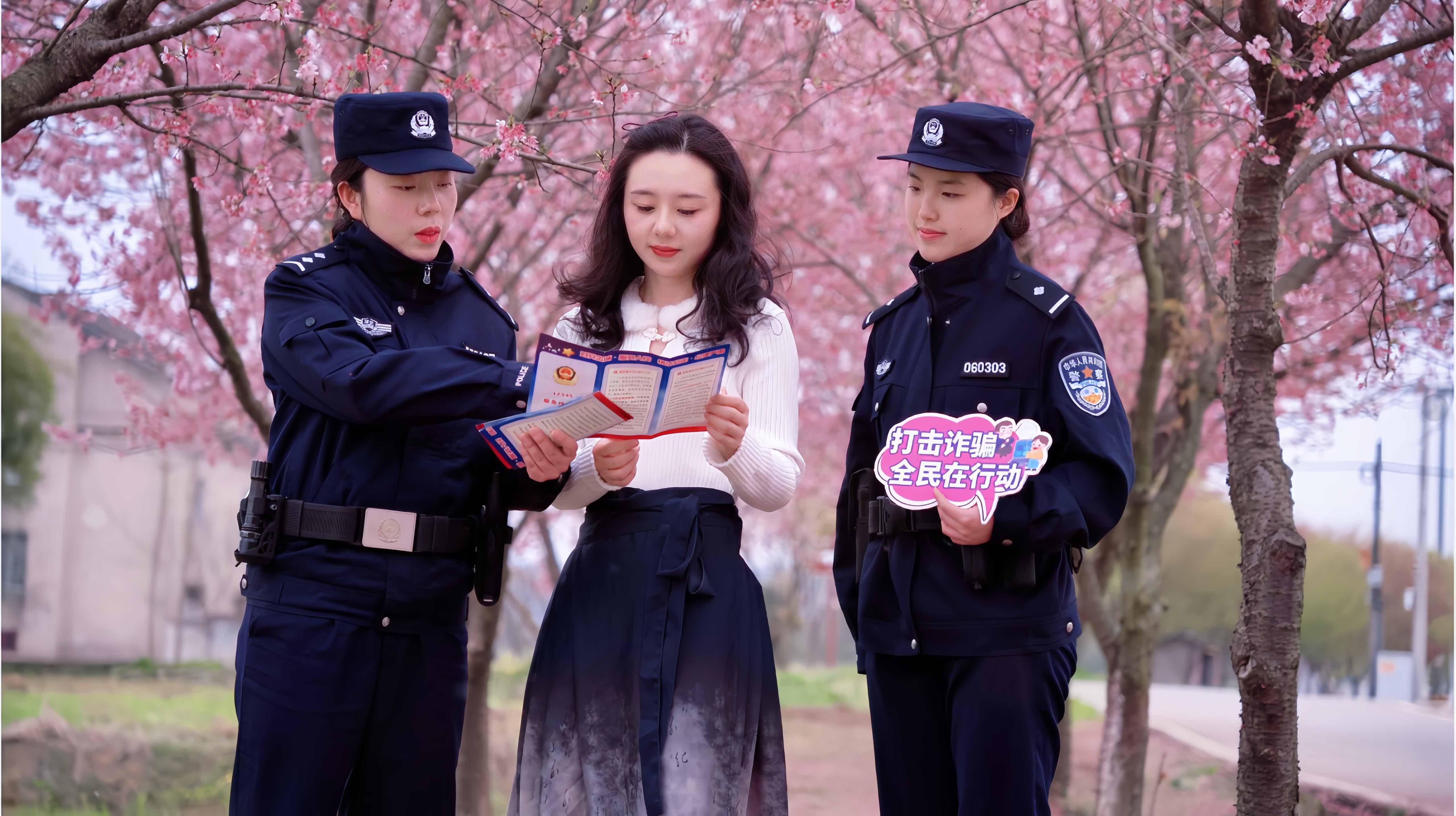 圖為宜都市公安局民輔警開(kāi)展反詐宣傳,提醒游客守好“錢袋子”。