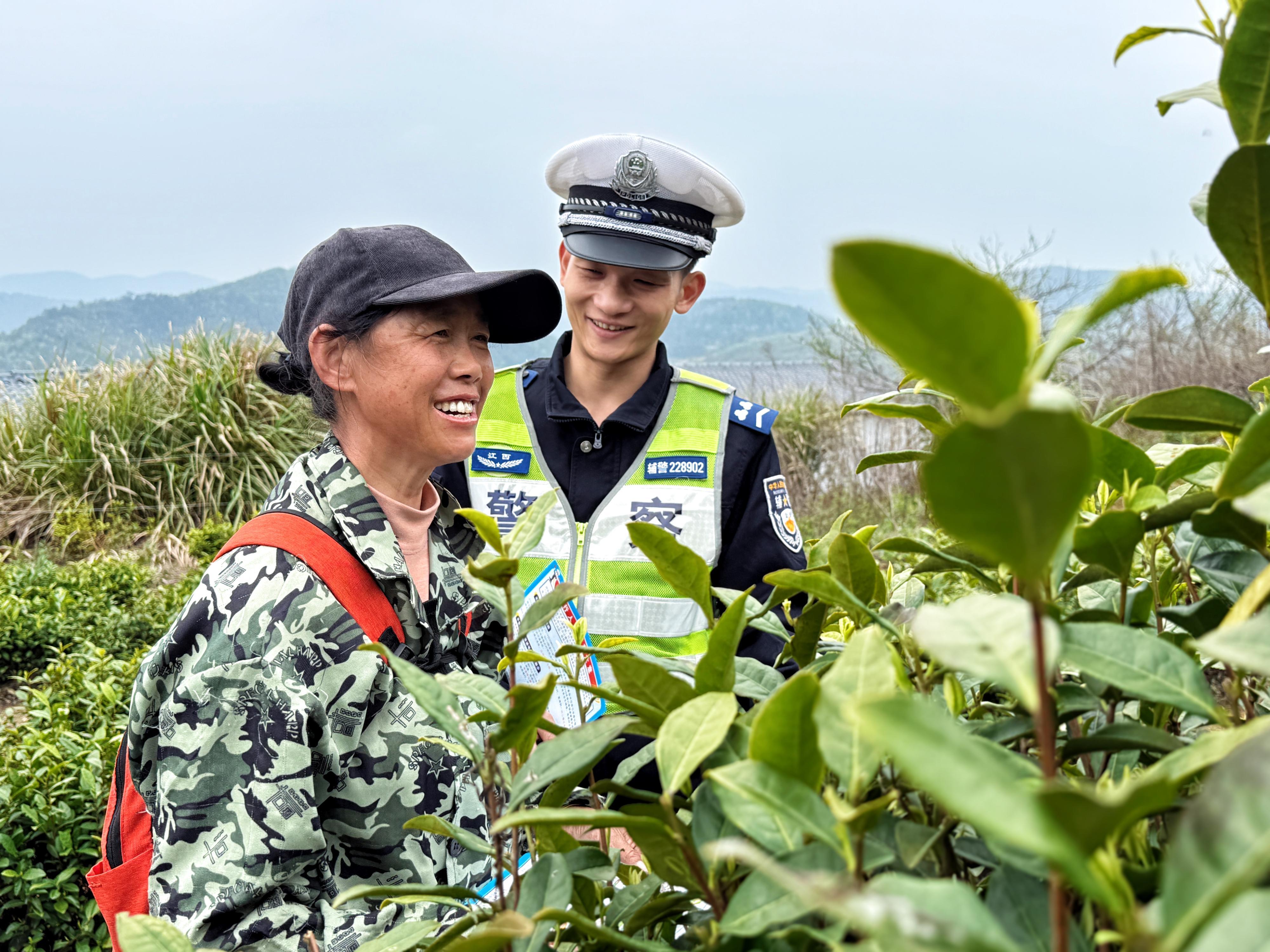 眼下正是清明茶的最佳采摘期,江西省武寧縣公安局交管大隊柯垅中隊組織民輔警走進轄區(qū)茶園,通過嘮家常、以案說法、互動答疑等方式,向茶農宣傳“一盔一帶”等交通安全知識,提醒茶農安全駕駛、文明出行。