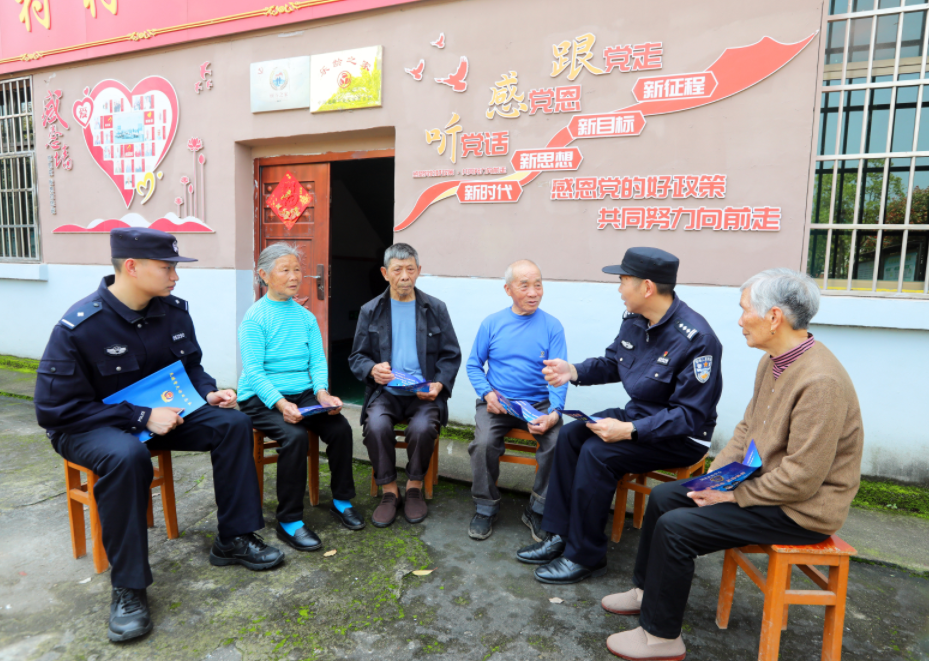圖為4月9日,民警在分宜鎮(zhèn)收村村“頤養(yǎng)之家”向老年人宣傳反詐知識。