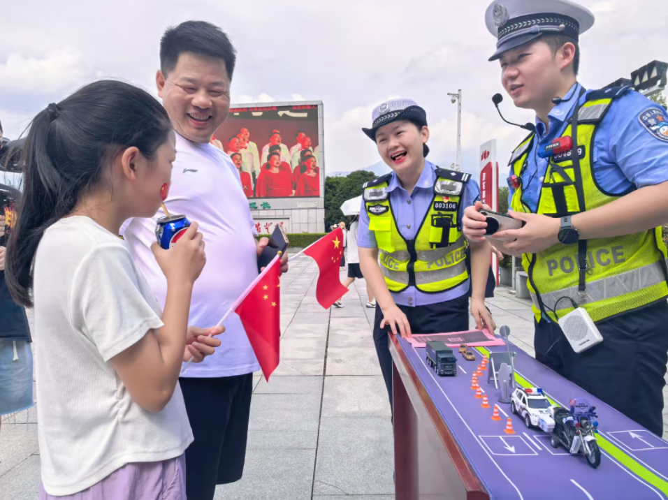 2025年國慶假期,來自湖南的游客王先生一家被“高速公路安全桌盤講解區(qū)”吸引,民警用沙盤模擬高速爆胎、發(fā)生事故等場景,手把手教他如何正確放置三角警示牌?!霸疽蚨萝囆那楹軣┰辏瑳]想到還能學(xué)到安全技能,井岡山的高速交警太有心了?!蓖跸壬B連稱贊。