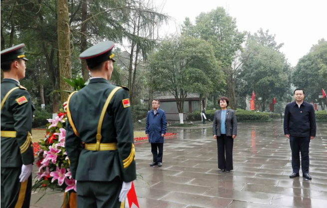 在鄧小平故居,葛曉燕在鄧小平銅像前敬獻(xiàn)花籃,瞻仰小平故居,觀看陳列館文物,深切緬懷小平同志在革命、建設(shè)和改革發(fā)展時(shí)期的豐功偉績(jī)。