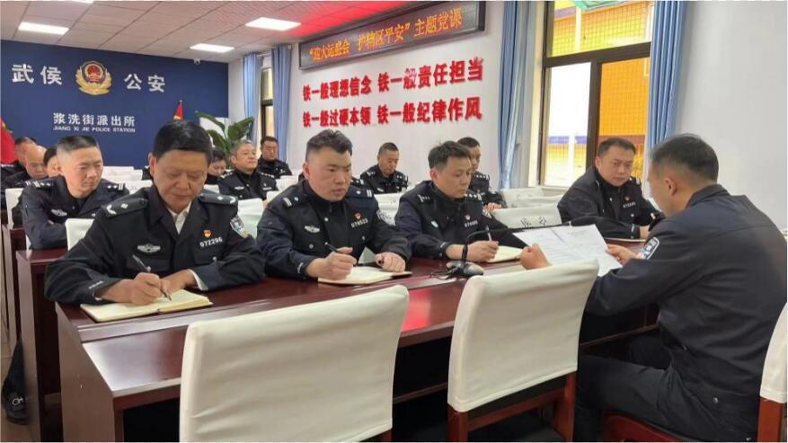 “同志們,我先代表支部班子表個(gè)態(tài):我們將身先士卒,始終帶頭站在大運(yùn)安保第一線,帶著大家一起干!”在四川省成都市武侯公安漿洗街派出所的會(huì)議室里,派出所黨支部正在開(kāi)展“迎大運(yùn)盛會(huì)、護(hù)轄區(qū)平安”主題黨課活動(dòng)。黨支部書(shū)記、所長(zhǎng)熊建在表態(tài)后,向全體黨員民警發(fā)出倡議:“也請(qǐng)每一名黨員民警積極響應(yīng)號(hào)召,充分發(fā)揮先鋒模范作用,團(tuán)結(jié)帶領(lǐng)全所民輔警全力投入,堅(jiān)決守護(hù)大運(yùn)會(huì)的絕對(duì)安全!”