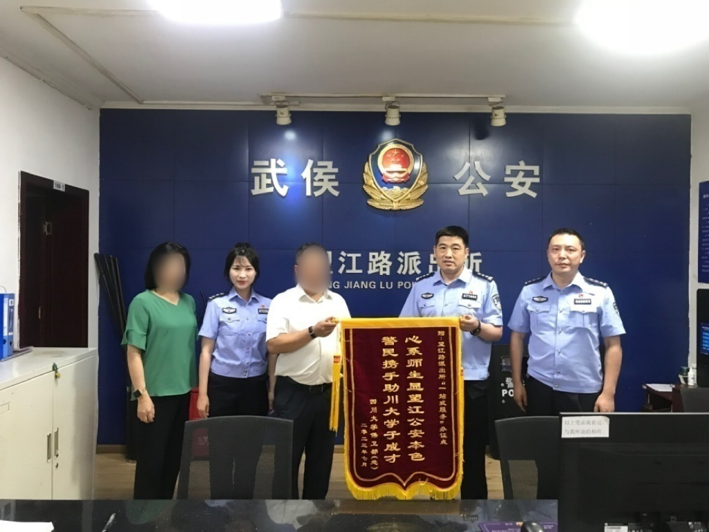 近日,四川大學(xué)保衛(wèi)部領(lǐng)導(dǎo)帶著感謝信和錦旗來(lái)到望江路派出所, 感謝派出所“一站式服務(wù)”辦證點(diǎn)深入大學(xué)校園,幫助學(xué)校2000余名畢業(yè)生順利解決了遷移證簽發(fā)辦理難題。