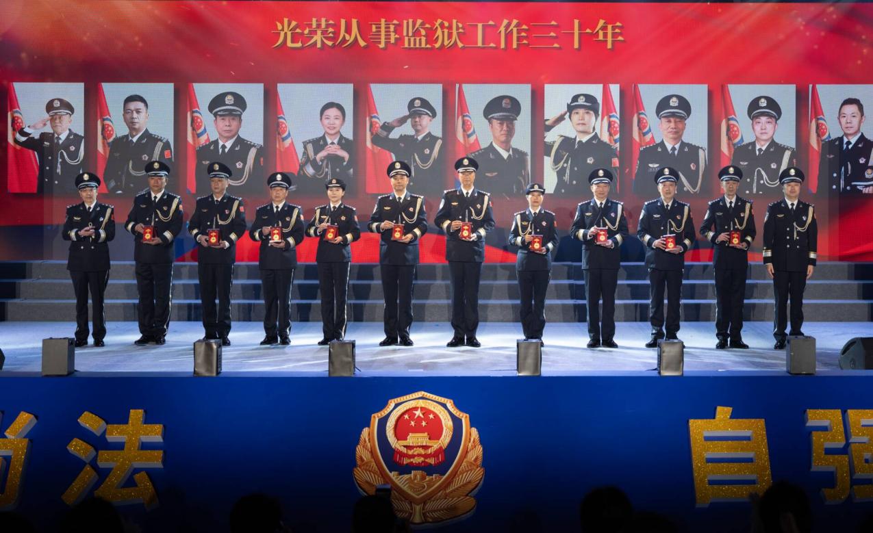 監(jiān)獄事業(yè)的發(fā)展,離不開一代又一代監(jiān)獄民警的忠誠奉獻(xiàn)、無悔付出。在今天這個特殊的日子里,全省監(jiān)獄為5452位從事監(jiān)獄工作30年的民警頒發(fā)紀(jì)念徽標(biāo)。省司法廳黨委委員、省監(jiān)獄管理局黨委書記、局長陳志林,省監(jiān)獄管理局黨委副書記、政委曾永忠在活動現(xiàn)場為10位從事監(jiān)獄工作三十年民警代表頒發(fā)紀(jì)念徽標(biāo)。