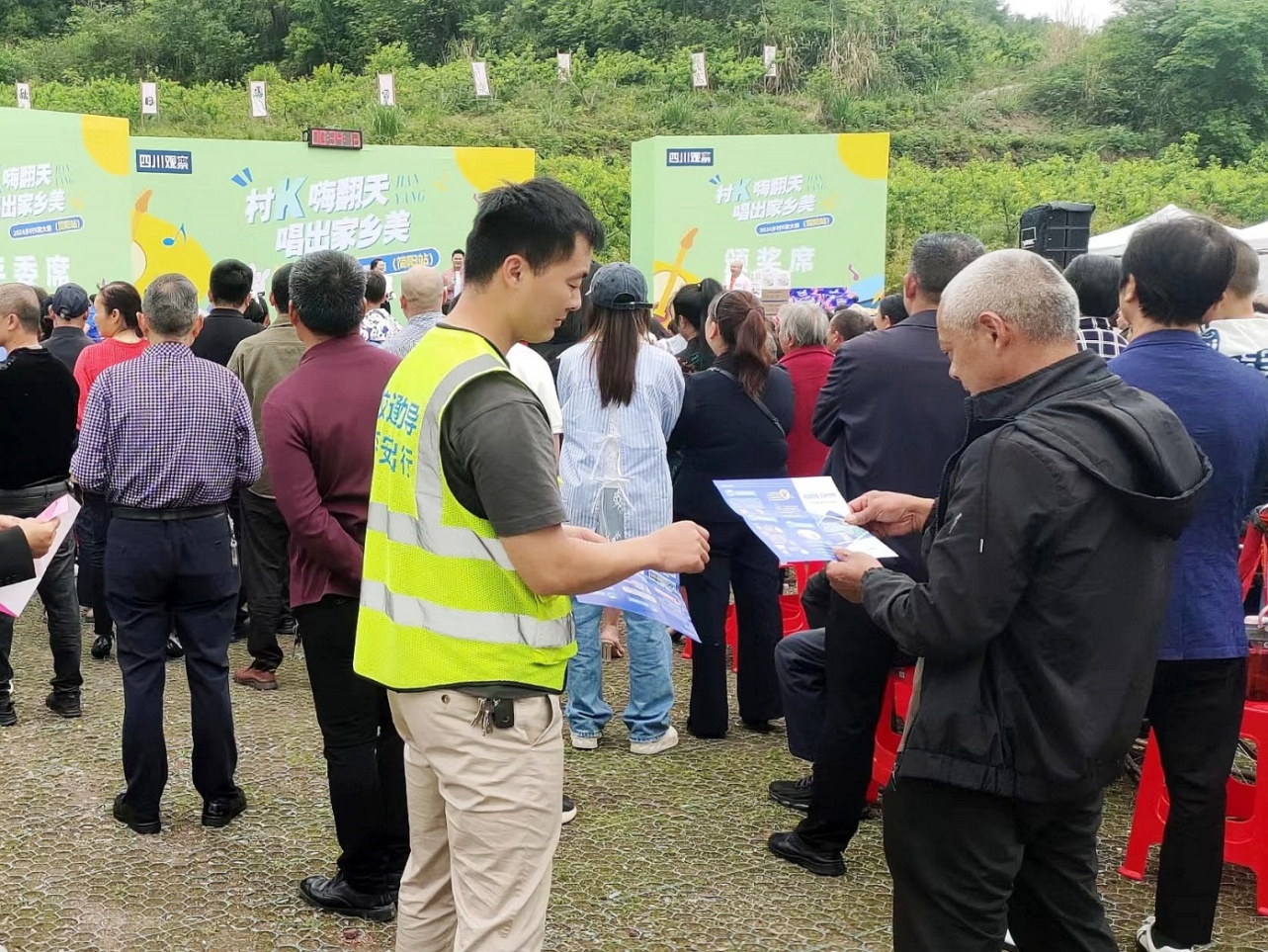 為進(jìn)一步提高廣大農(nóng)村居民的交通安全意識,有效預(yù)防各類道路交通事故,簡陽市道安辦組織公安交警和禾豐鎮(zhèn)交管辦拓展宣傳渠道,從過去的“搭臺唱戲”轉(zhuǎn)變?yōu)椤敖枧_唱戲”,利用K歌大賽期間人多、車多,人流集中等有利時機(jī),將道路交通安全宣傳與全民K歌活動深度融合,組織公安交警和交管員勸導(dǎo)員走進(jìn)K歌現(xiàn)場持續(xù)開展文明交通宣傳勸導(dǎo)活動。