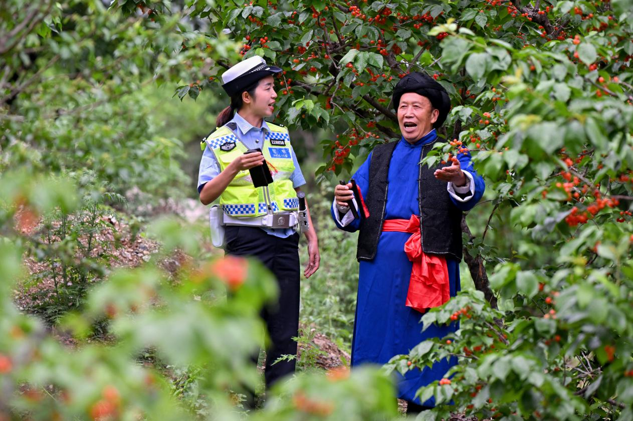 “所有開(kāi)車駕駛員,自我告誡重三件。發(fā)動(dòng)車輛開(kāi)車前,重要部位查一遍。發(fā)動(dòng)車輛開(kāi)車前,排除隱患保安全。所有開(kāi)車駕駛員,發(fā)動(dòng)車輛開(kāi)車前,系安全帶要規(guī)范。安全行駛最重要,平平安安回家園?!?月25日下午,正值2024年瀘定紅櫻桃采摘體驗(yàn)季推薦會(huì)在四川省甘孜州瀘定縣冷磧鎮(zhèn)杵坭櫻桃谷即將開(kāi)幕之際,在果實(shí)累累的杵坭村櫻桃樹(shù)下,有“微笑交警”之譽(yù)的劉格蘆會(huì)同省級(jí)非物質(zhì)文化遺產(chǎn)瀘定山歌傳承人吳全清老人,冒著細(xì)雨一道錄制《開(kāi)車自我告誡重三件》快板說(shuō)唱視頻,用于在線上“平安甘孜”傳播護(hù)航五一小長(zhǎng)假。