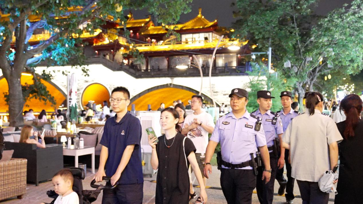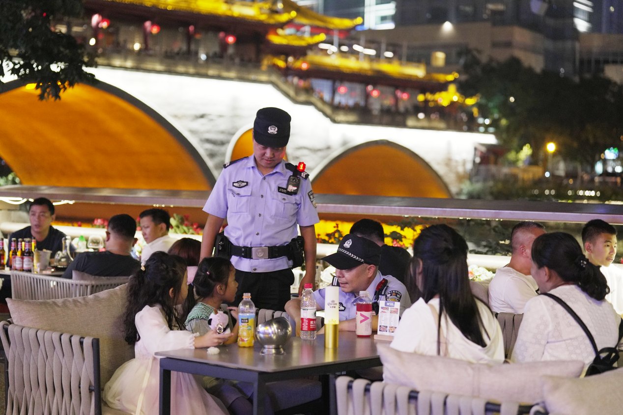 “無論是外地游客還是本地居民,很多人都喜歡在望江河邊吹吹風(fēng)、泡泡吧。”絲管路的“管段”民警段軍2009年從交警分局調(diào)到望江路派出所后,15年來一直負(fù)責(zé)老馬路社區(qū)的相關(guān)警務(wù)工作。段軍說,每逢節(jié)假日來絲管路放松的人就特別多,所上也會(huì)投入更多精力在“酒吧街”和臨近的望江公園、川大博物館等景點(diǎn)及區(qū)域。從節(jié)前的消防安全檢查、治安隱患排查,到節(jié)日期間的巡邏防控、安全守護(hù),大家一絲不茍、全力堅(jiān)守。