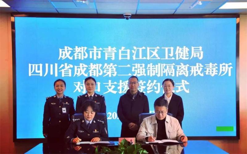 為進(jìn)一步提高場所戒毒醫(yī)療工作管理專業(yè)化、規(guī)范化水平,提升戒毒醫(yī)療隊伍整體業(yè)務(wù)素質(zhì),近日,四川省成都第二強制隔離戒毒所與成都市青白江區(qū)衛(wèi)生健康局簽訂對口支援合作協(xié)議。成都市青白江區(qū)衛(wèi)生健康局黨組書記、局長李顯榮,四川省成都第二強制戒毒隔離所黨委副書記、政委羅濰等出席簽約儀式?!?/p>