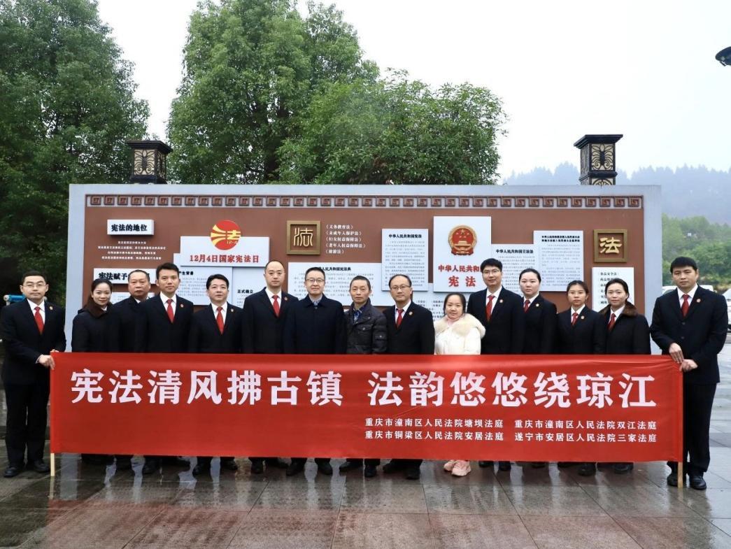 2024年12月4日,是我國(guó)第十一個(gè)“國(guó)家憲法日”;12月1日至12月7日,是第七個(gè)“憲法宣傳周”。為大力弘揚(yáng)憲法精神,彰顯憲法權(quán)威,進(jìn)一步深化川渝毗鄰地區(qū)司法協(xié)作,豐富拓展瓊江流域“紐扣法庭”工作機(jī)制的內(nèi)涵和外延,12月4日,四川省遂寧市安居區(qū)人民法院三家法庭攜手重慶市潼南區(qū)人民法院塘壩法庭、雙江法庭和重慶市銅梁區(qū)人民法院安居法庭,一同前往重慶市潼南區(qū)雙江古鎮(zhèn)開(kāi)展“12·4”國(guó)家憲法日主題普法宣傳活動(dòng)。川渝兩地人大代表應(yīng)邀參加此次活動(dòng)。