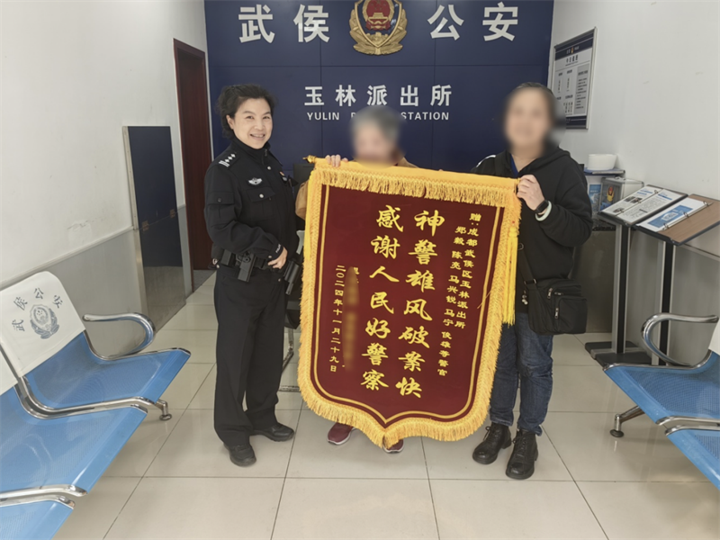 “感謝警察同志迅速把我母親的3萬(wàn)元追回來(lái),如果不是你們平時(shí)反詐宣傳做得好,我也不會(huì)第一時(shí)間報(bào)警,真的太感謝你們了!”12月1日,轄區(qū)周婆婆和女兒特意到玉林派出所為民警送來(lái)一面印有“神警雄風(fēng)破案快 感謝人民好警察”的錦旗,表達(dá)對(duì)民警為其追回被騙現(xiàn)金的感謝之情。