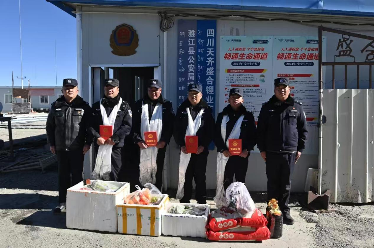 雪山下的忠誠(chéng),值得被禮遇。海拔4540米,這是四川省海拔最高警務(wù)站——甘孜州雅江縣公安局瓦多派出所措拉礦山警務(wù)站的高度。這既是海報(bào)的高度,更是忠誠(chéng)的高度。近日,雅江縣公安局二級(jí)英模王偉副書記專程送獎(jiǎng)到措拉礦山警務(wù)室,帶去了縣局黨委的問(wèn)候。視其常年在雪山之巔守護(hù)著亞洲最大單體鋰礦區(qū),縣公安局黨委專門為土登郎加等4名輔警記功授獎(jiǎng),并獻(xiàn)上哈達(dá)。