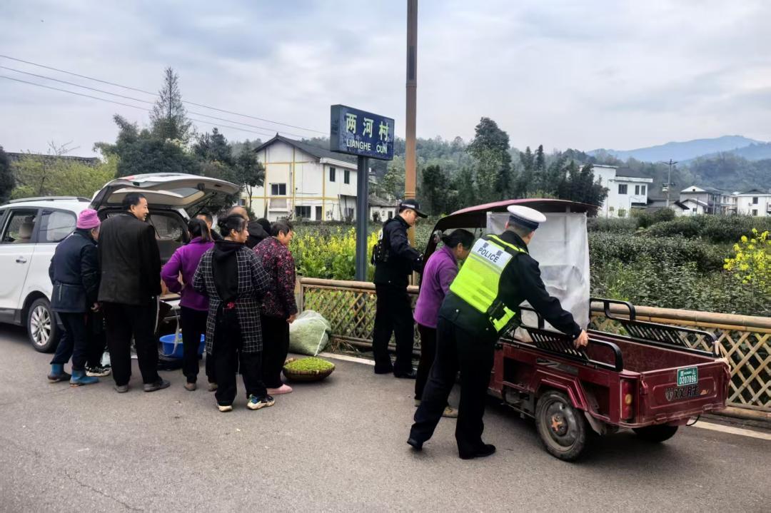 “大哥,三輪車停在這彎道上,后車要是視線不好剎不住,后果你想過(guò)沒有?”在柳江鎮(zhèn)兩河村一處臨時(shí)茶葉交易點(diǎn),民警一邊幫著茶農(nóng)把茶簍搬到安全區(qū)域,一邊耐心講解占道交易的危害。沒有生硬的說(shuō)教,沒有冷冰冰的罰單,民警們用最接地氣的“家鄉(xiāng)話”,在茶農(nóng)歇腳的間隙、在收茶人過(guò)磅的片刻,把“掙錢不忘安全”的理念種進(jìn)大家心里。