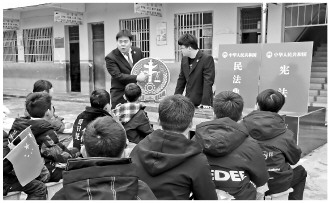 新年開學(xué)第一天,江西省萬年縣人民法院法官來到該縣石鎮(zhèn)鎮(zhèn)最偏遠(yuǎn)的鄉(xiāng)村小學(xué)開展送法進(jìn)校園活動(dòng)。圖為法官結(jié)合相關(guān)案件,對校園欺凌、性侵預(yù)防、禁毒等內(nèi)容進(jìn)行宣講。