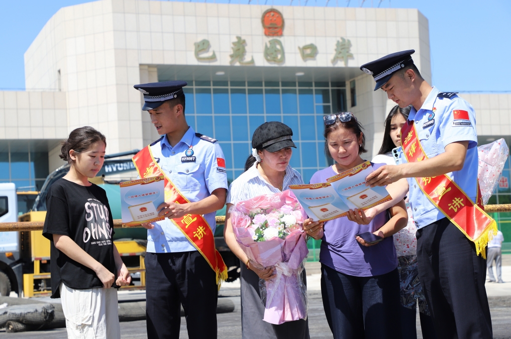 7月9日,新疆出入境邊防檢查站總站巴克圖出入境邊防檢查站執(zhí)勤民警深入國(guó)門(mén)口岸,開(kāi)展《中華人民共和國(guó)出境入境管理法》普法宣傳活動(dòng)。其間,執(zhí)勤民警在口岸旅檢大廳、限定區(qū)域等地,通過(guò)發(fā)放宣傳冊(cè)、法律解讀、現(xiàn)場(chǎng)答疑等形式,向出入境旅客普及法律知識(shí),提升出入境旅客的守法意識(shí),為口岸安全穩(wěn)定筑牢法治根基和安全屏障。