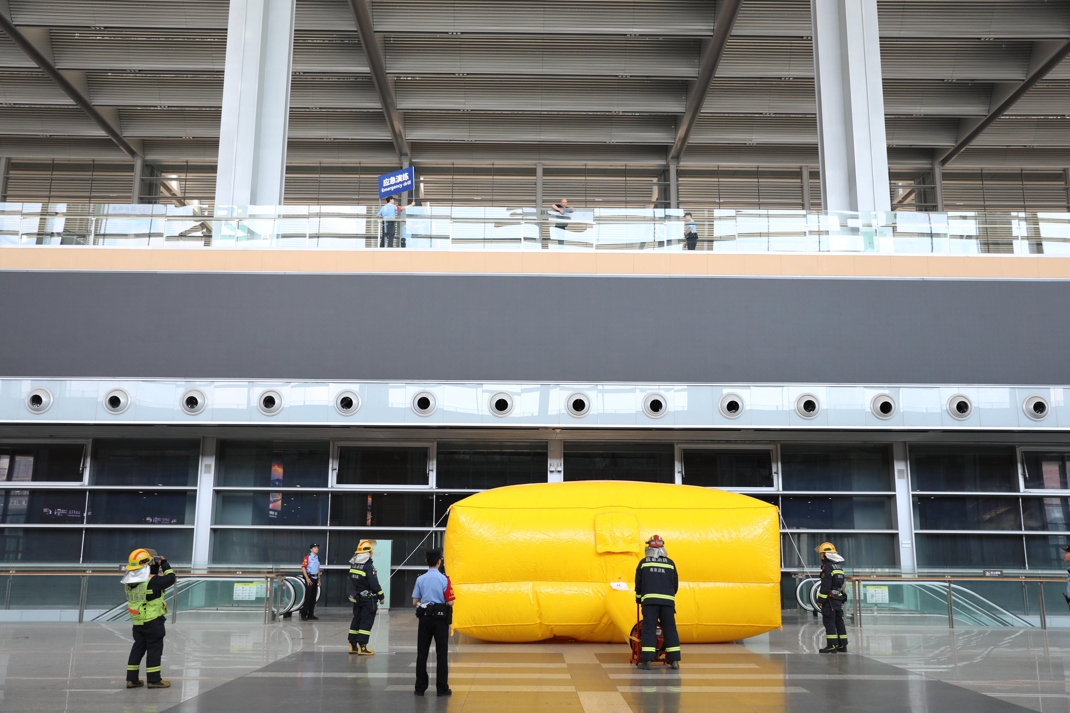 圖為北京鐵警聯(lián)合消防部門和豐臺客運(yùn)站開展應(yīng)急拉動演練。