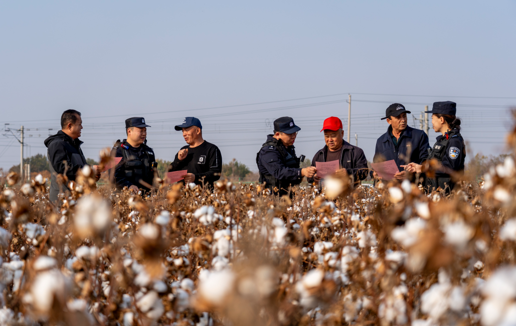 正值新疆棉花豐收季,10月21日,烏魯木齊鐵路公安處呼圖壁站派出所組織民警深入轄區(qū)棉花地與軋花場向棉農(nóng)宣傳愛路護路及消防安全知識,筑牢棉區(qū)安全防線。