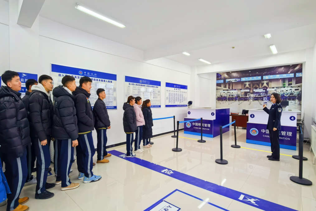 1月7日,新疆阿勒泰地區(qū)第二高級中學(xué)的學(xué)生代表與南開大學(xué)研究生支教團(tuán)成員共同走進(jìn)新疆出入境邊防檢查總站紅山嘴出入境邊防檢查站,“沉浸式”體驗邊檢工作,感受國門衛(wèi)士的責(zé)任與擔(dān)當(dāng)。