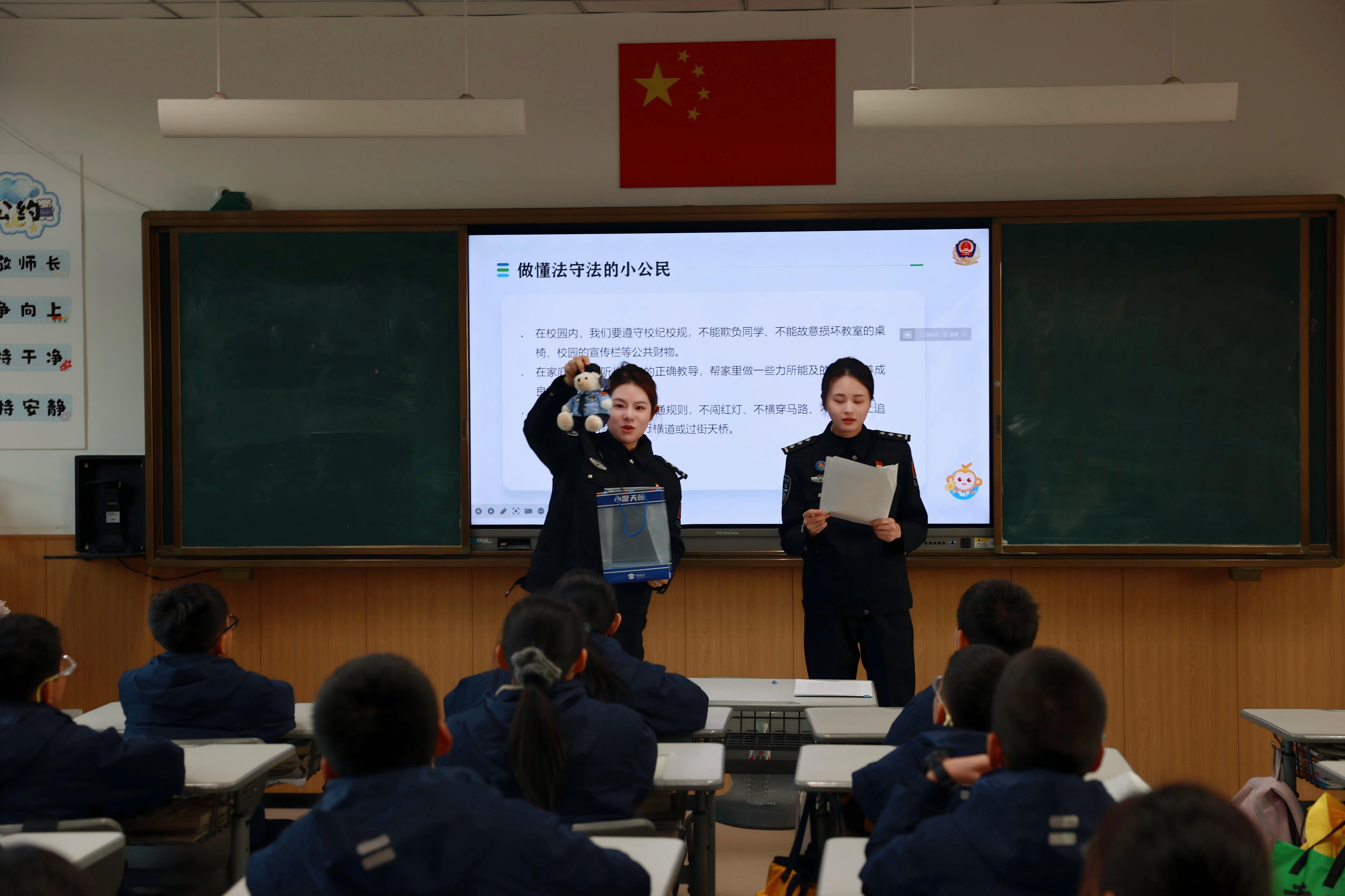 活動(dòng)中,民警通過(guò)趣味問(wèn)答、卡通圖示等互動(dòng)方式,帶領(lǐng)同學(xué)們“認(rèn)識(shí)人民警察”。通過(guò)通俗易懂的語(yǔ)言和貼近生活的例子,介紹了不同警種的職責(zé)使命及110報(bào)警實(shí)用技巧,在孩子們心中播下了信任與尊重的種子。此外,針對(duì)校園欺凌等熱點(diǎn)問(wèn)題,民警圍繞未成年人保護(hù)法、治安管理處罰法等法律法規(guī),結(jié)合真實(shí)案例,拆解肢體欺凌、語(yǔ)言欺凌、網(wǎng)絡(luò)欺凌等常見形式,傳授“及時(shí)報(bào)告、勇敢說(shuō)不、護(hù)住要害”的自我保護(hù)方法,引導(dǎo)孩子們樹立知法、懂法、守法意識(shí),學(xué)會(huì)運(yùn)用法律武器維護(hù)自身權(quán)益。