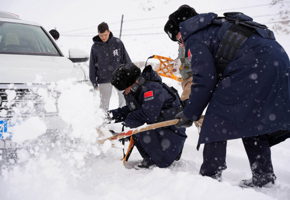 在極具探險(xiǎn)魅力的塔莎古道,2025年1月5日的一場大雪阻斷了過往旅客的通途,正在轄區(qū)巡邏的民警劉濤知曉情況后第一時(shí)間趕赴現(xiàn)場開展救援行動(dòng)。他一邊引導(dǎo)過往車輛減速慢行,維護(hù)交通秩序,一邊使用鐵鍬和繩索等救援工具施救,持續(xù)奮戰(zhàn)7小時(shí),成功救出被困車輛60余輛,群眾200余人。