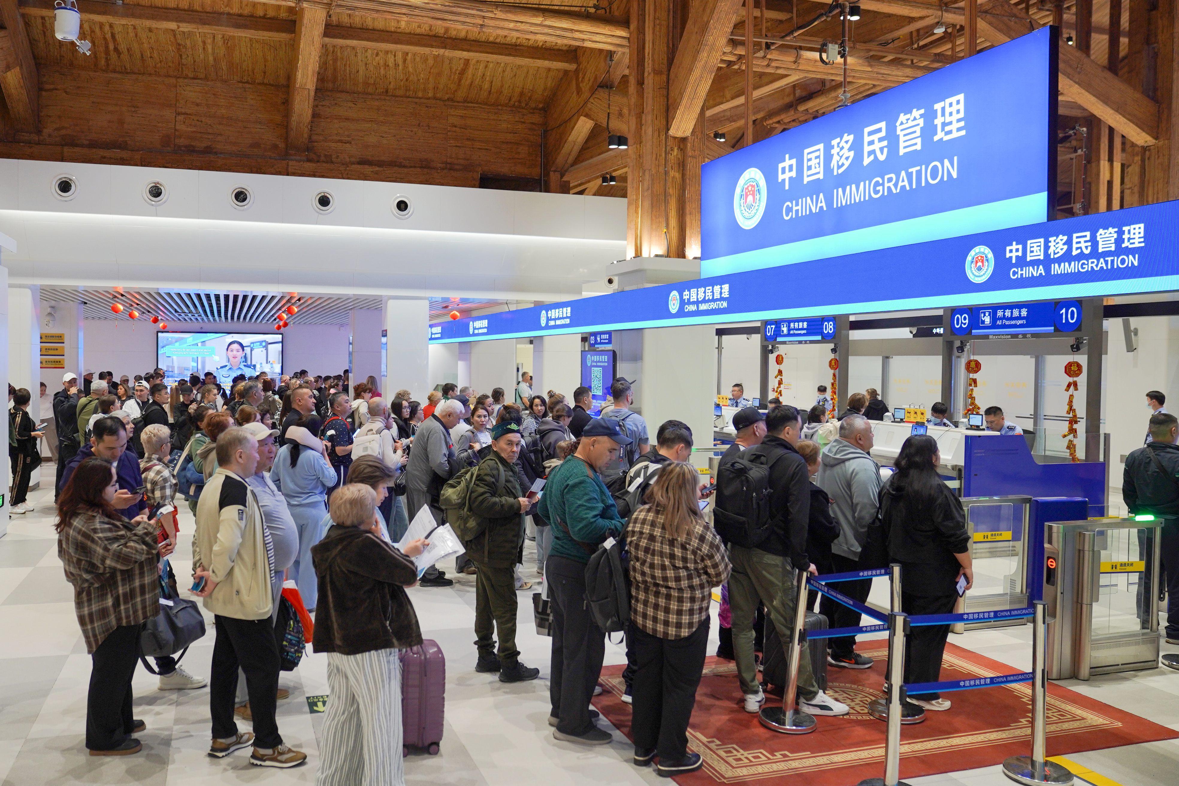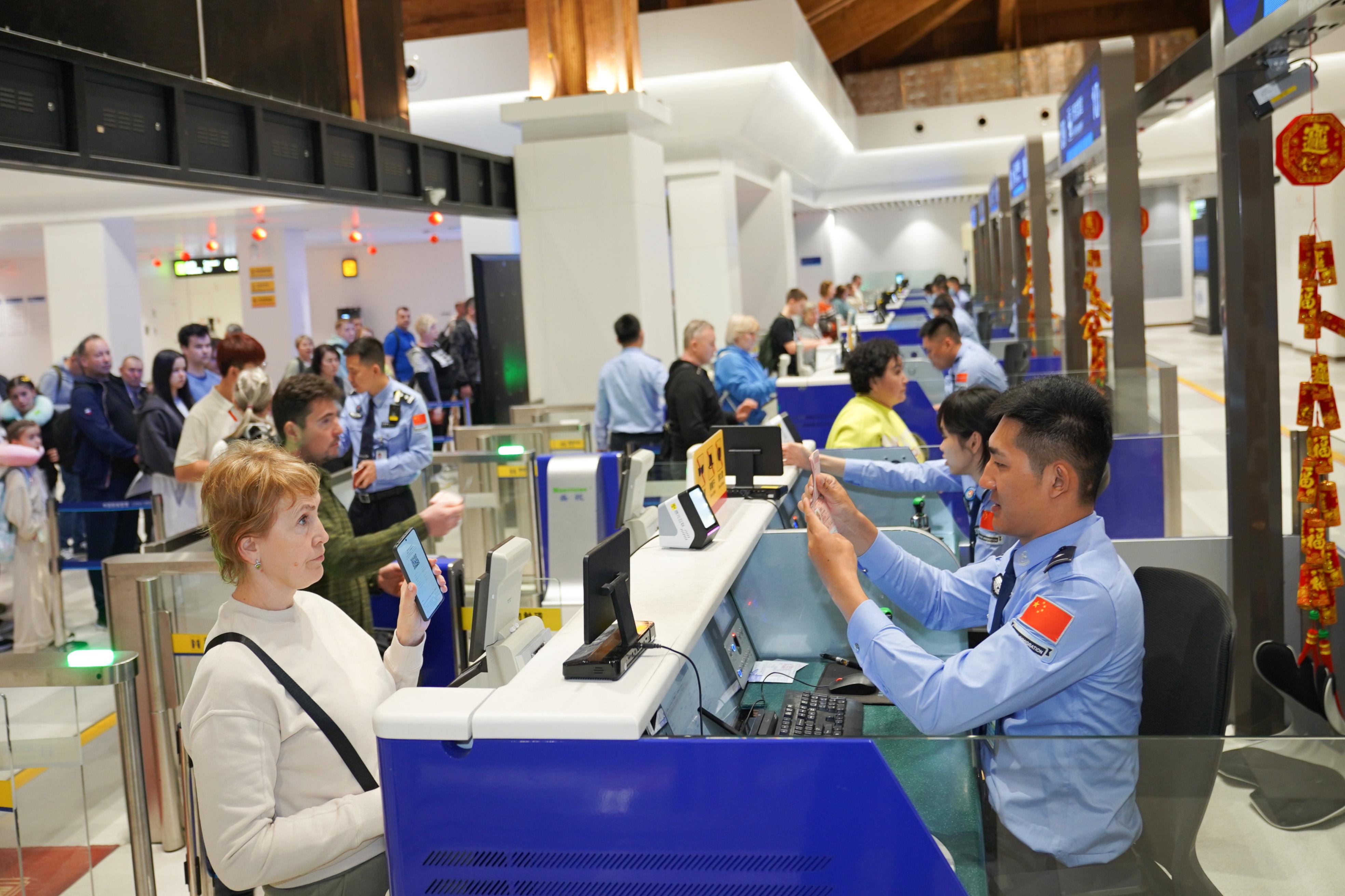 “謝—謝—!”一位正在辦理出境手續(xù)的俄羅斯旅客,耐心教懷抱中的孩子用中文向民警表達(dá)謝意。在這里,許多俄羅斯旅客即便不會(huì)說(shuō)英語(yǔ),也能熟練用中文說(shuō)一句“謝謝”。