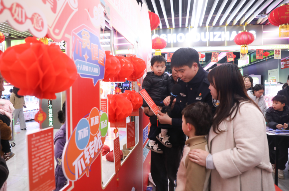 圖為3月2日晚,民警走進(jìn)轄區(qū)商超向群眾宣傳反詐知識。