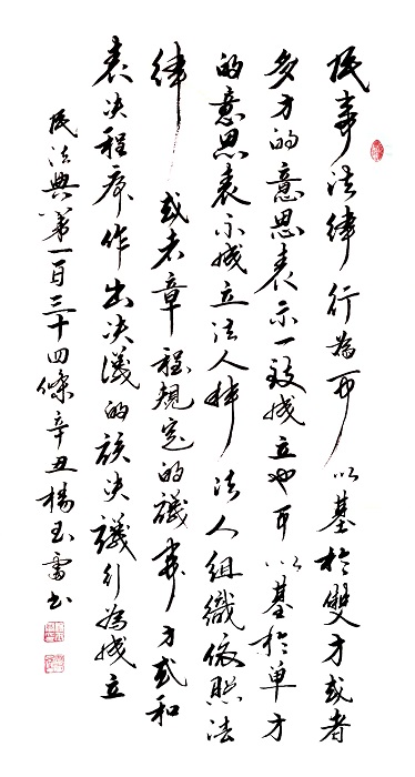 “書·法”活動(dòng)以書寫《中華人民共和國(guó)民法典》法條開筆,未來(lái)將對(duì)準(zhǔn)更多的法律。