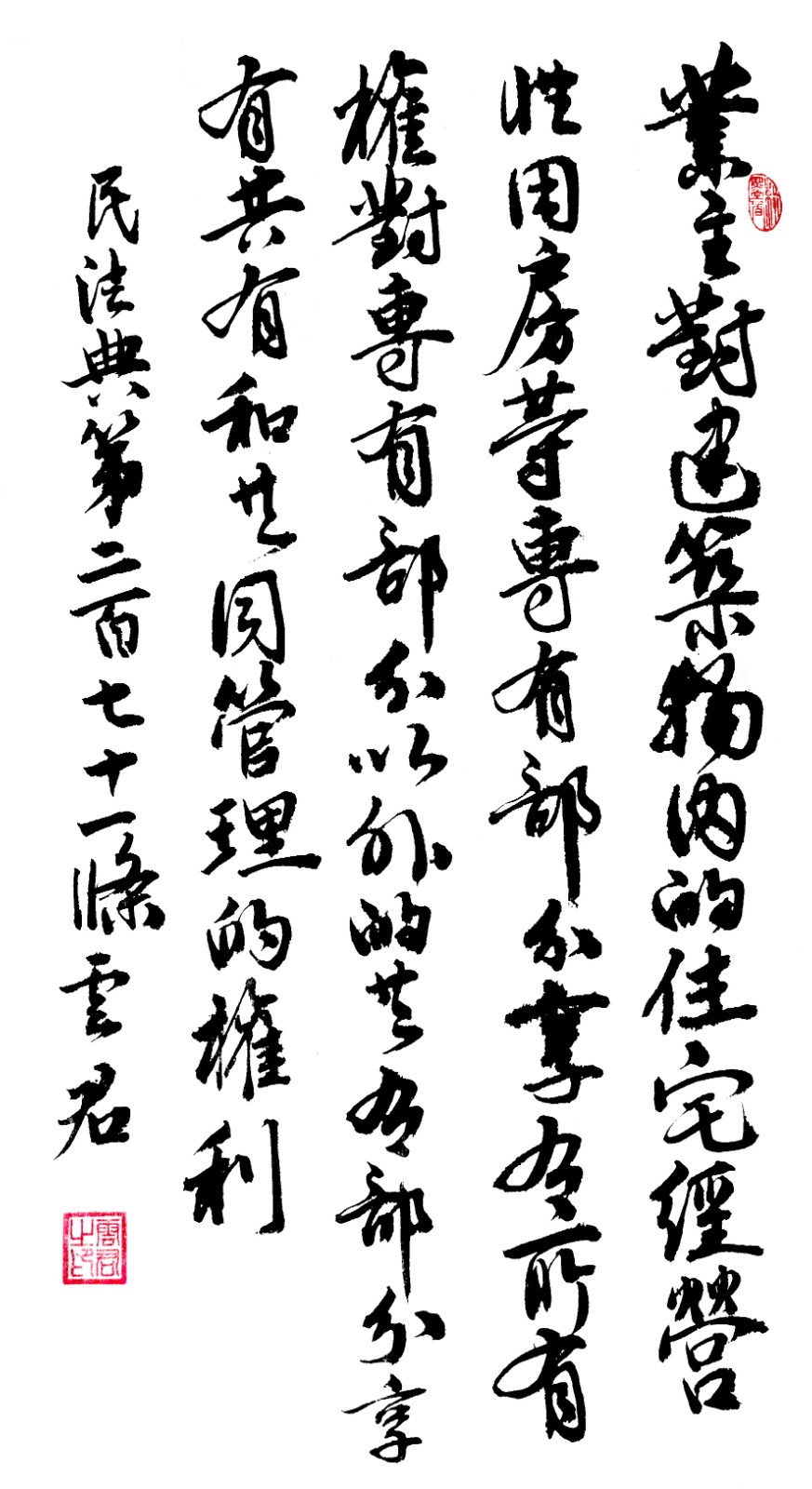 民法典第二百七十一條 業(yè)主對(duì)建筑物內(nèi)的住宅、經(jīng)營(yíng)性用房等專(zhuān)有部分享有所有權(quán),對(duì)專(zhuān)有部分以外的共有部分享有共有和共同管理的權(quán)利。