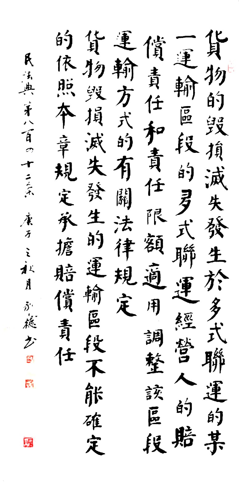 民法典第八百四十二條 貨物的毀損、滅失發(fā)生于多式聯(lián)運的某一運輸區(qū)段的,多式聯(lián)運經(jīng)營人的賠償責任和責任限額,適用調(diào)整該區(qū)段運輸方式的有關(guān)法律規(guī)定;貨物毀損、滅失發(fā)生的運輸區(qū)段不能確定的,依照本章規(guī)定承擔賠償責任。