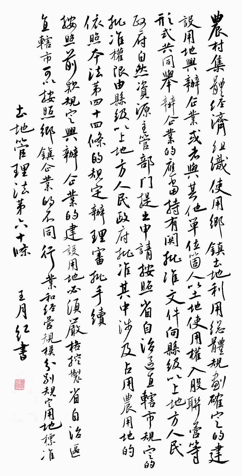 繼1600余位書法家參與書寫《中華人民共和國(guó)民法典》全部1260條法條之后,法治日?qǐng)?bào)社聯(lián)合自然資源部法規(guī)司、自然資源部書畫研究會(huì)和北京昌平書法家協(xié)會(huì),將筆端對(duì)準(zhǔn)土地管理“一法一條例”,即《中華人民共和國(guó)土地管理法》和《中華人民共和國(guó)土地管理法實(shí)施條例》。