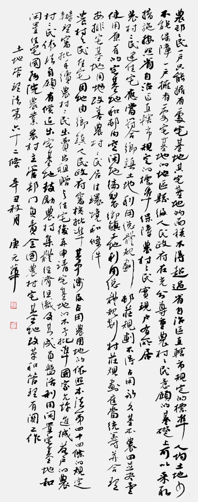 繼1600余位書法家參與書寫《中華人民共和國民法典》全部1260條法條之后,法治日報社聯(lián)合自然資源部法規(guī)司、自然資源部書畫研究會和北京昌平書法家協(xié)會,將筆端對準(zhǔn)土地管理“一法一條例”,即《中華人民共和國土地管理法》和《中華人民共和國土地管理法實施條例》。