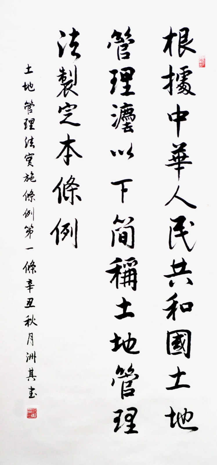 繼1600余位書法家參與書寫《中華人民共和國民法典》全部1260條法條之后,法治日報(bào)社聯(lián)合自然資源部法規(guī)司、自然資源部書畫研究會(huì)和北京昌平書法家協(xié)會(huì),將筆端對準(zhǔn)土地管理“一法一條例”,即《中華人民共和國土地管理法》和《中華人民共和國土地管理法實(shí)施條例》。