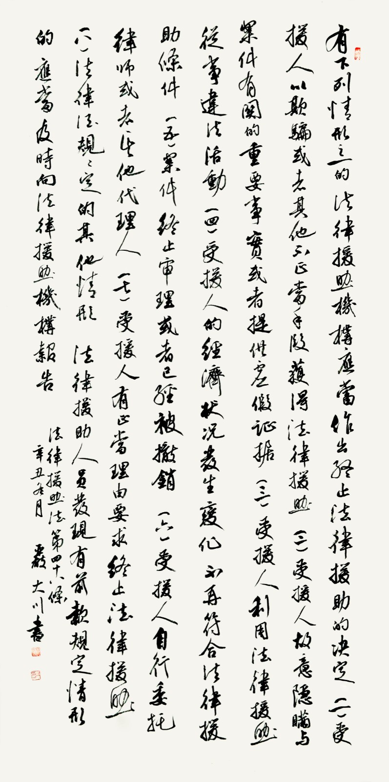 法律援助法第四十八條 有下列情形之一的,法律援助機構(gòu)應當作出終止法律援助的決定: