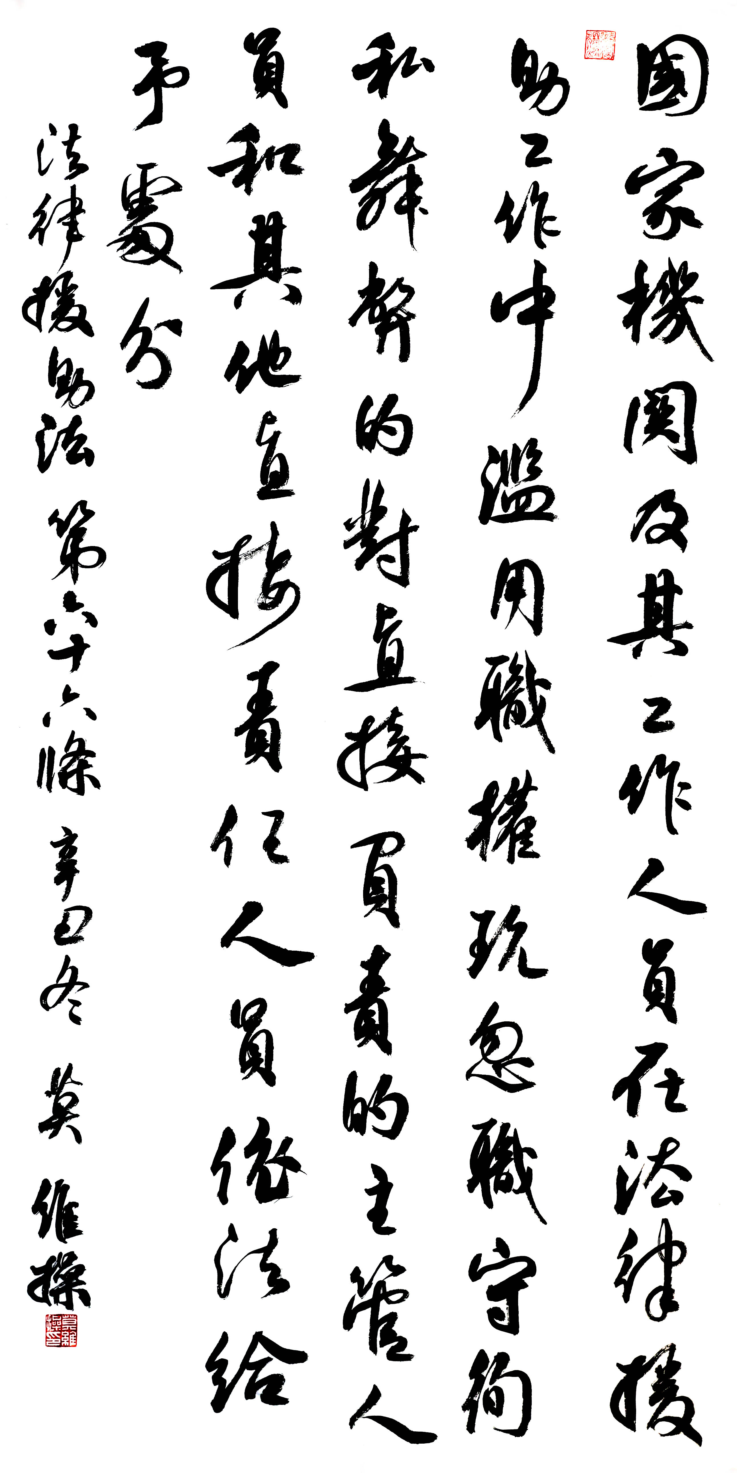 “書·法”活動旨在為創(chuàng)新法治宣傳教育,多開一點腦洞、多花一點心思、多出一點力量、多做一點貢獻,引領(lǐng)和推動更多的人拿起筆來學法、寫法,在不斷“書·法”過程中,提升自身的法治素養(yǎng),在全社會弘揚法治精神。