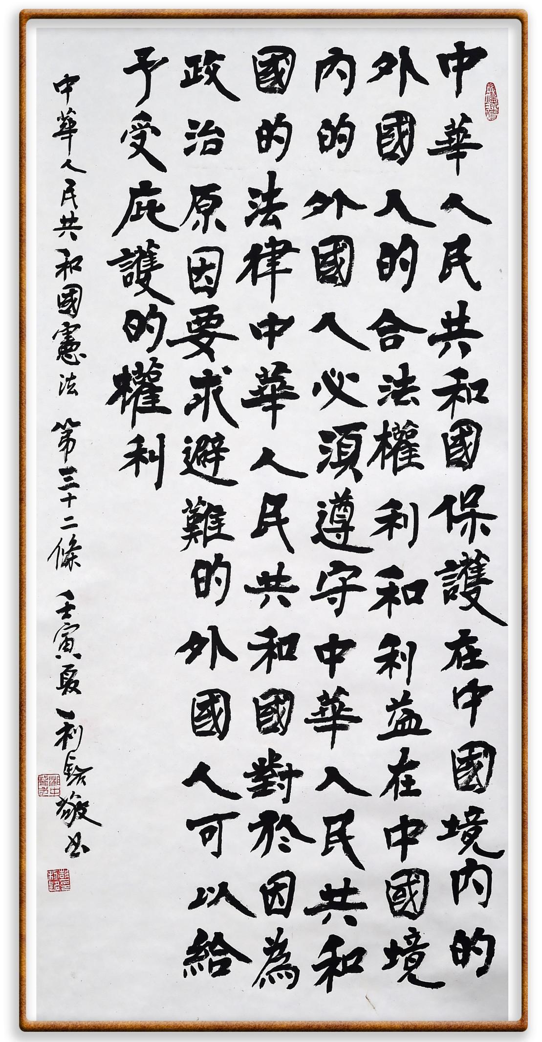 憲法第三十二條 中華人民共和國保護(hù)在中國境內(nèi)的外國人的合法權(quán)利和利益,在中國境內(nèi)的外國人必須遵守中華人民共和國的法律。