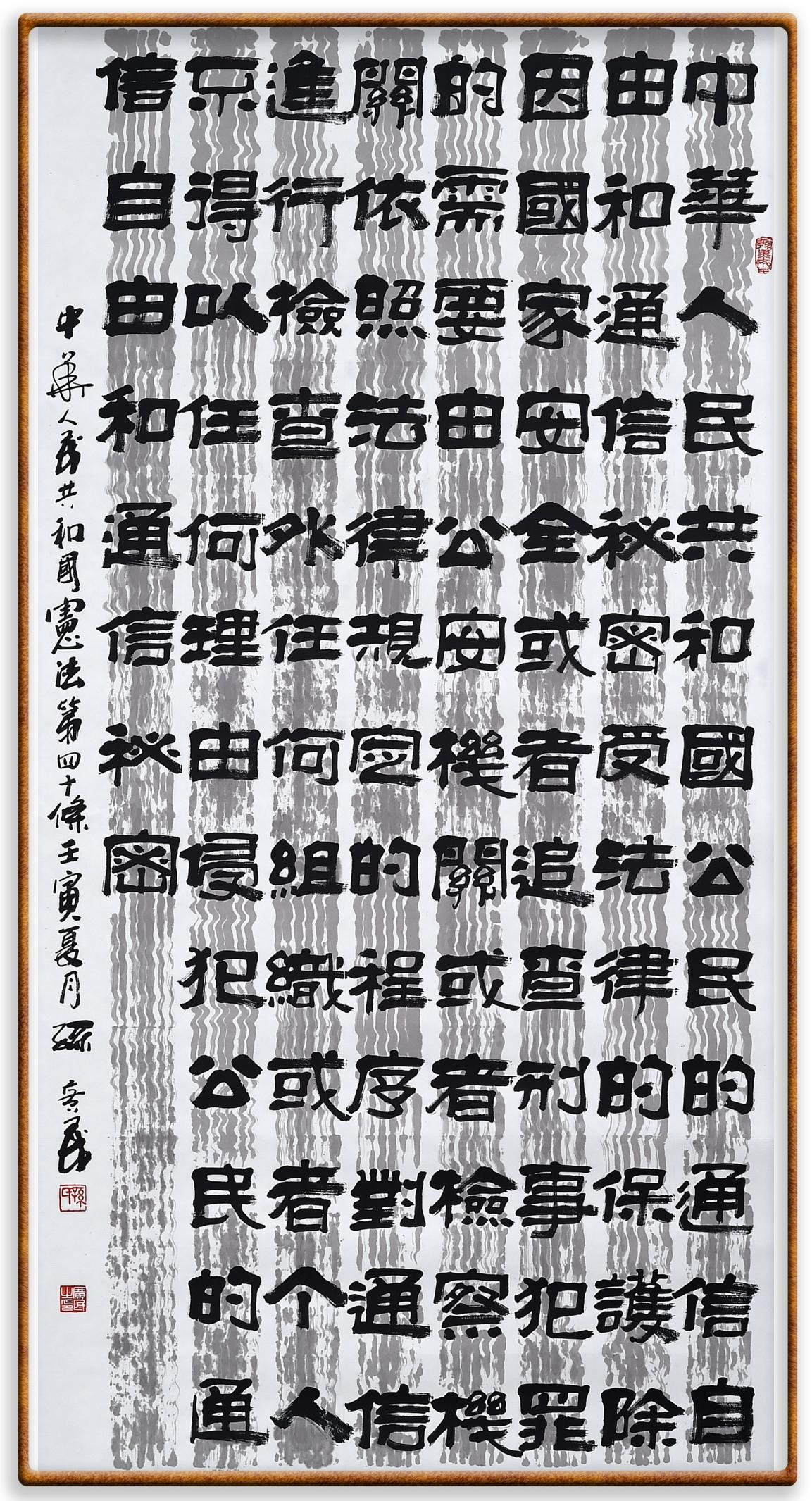 繼《中華人民共和國民法典》《中華人民共和國土地管理法》《中華人民共和國土地管理法實施條例》《中華人民共和國法律援助法》之后,法治日報社聯(lián)合北京市司法局、北京市書法家協(xié)會,將筆端對準(zhǔn)《中華人民共和國憲法》和《中華人民共和國行政處罰法》。