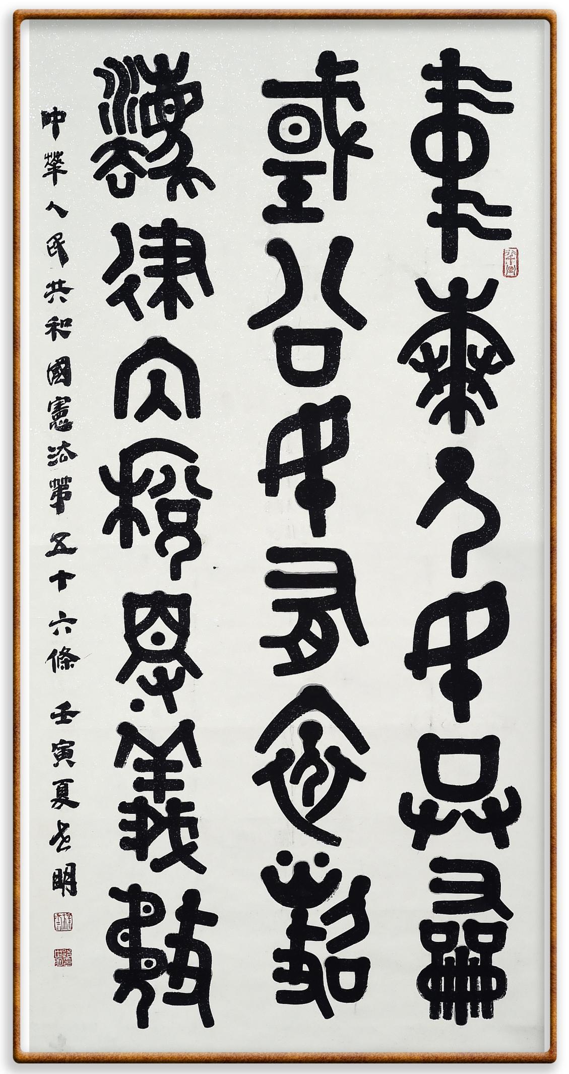 繼《中華人民共和國民法典》《中華人民共和國土地管理法》《中華人民共和國土地管理法實施條例》《中華人民共和國法律援助法》之后,法治日報社聯(lián)合北京市司法局、北京書法家協(xié)會,將筆端對準(zhǔn)《中華人民共和國憲法》和《中華人民共和國行政處罰法》。