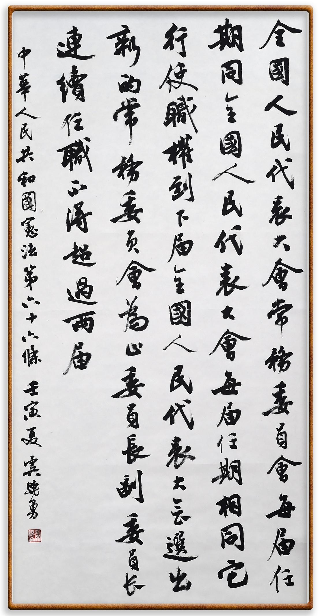 繼《中華人民共和國民法典》《中華人民共和國土地管理法》《中華人民共和國土地管理法實(shí)施條例》《中華人民共和國法律援助法》之后,法治日報(bào)社聯(lián)合北京市司法局、北京書法家協(xié)會(huì),將筆端對準(zhǔn)《中華人民共和國憲法》和《中華人民共和國行政處罰法》。